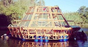 Italian design studio Studiomobile has teamed up with the University of Florence to create a prototype drifting greenhouse. The Jellyfish Barge runs off-grid and makes its own fresh water through an onboard system of solar distillation.